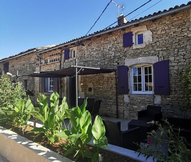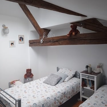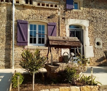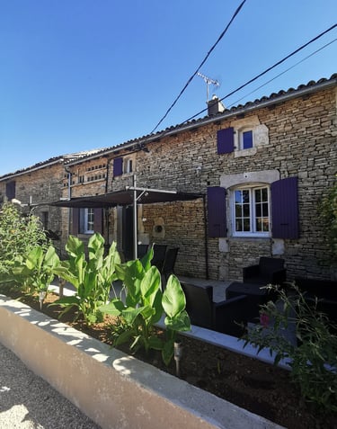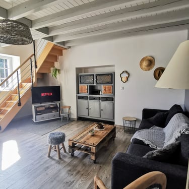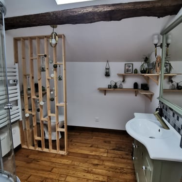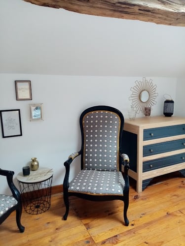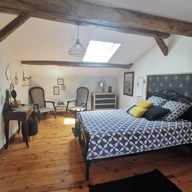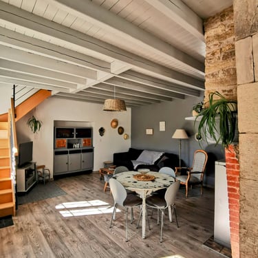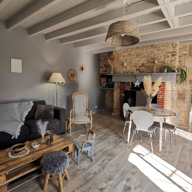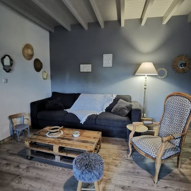 Avec ce premier gite, nous avons voulu créer un environnement chaleureux et accueillant. Nous avons souhaité conserver le charme de l'ancien tout apportant de la modernité. Pour cela, nous avons combiné les couleurs et les textures et ajouté des touches personnelles dans cette décoration avec de nombreux meubles chinés et rénovés par nos soins. Notre volonté a été de créer une ambiance authentique, conviviale et confortable pour nos invités.